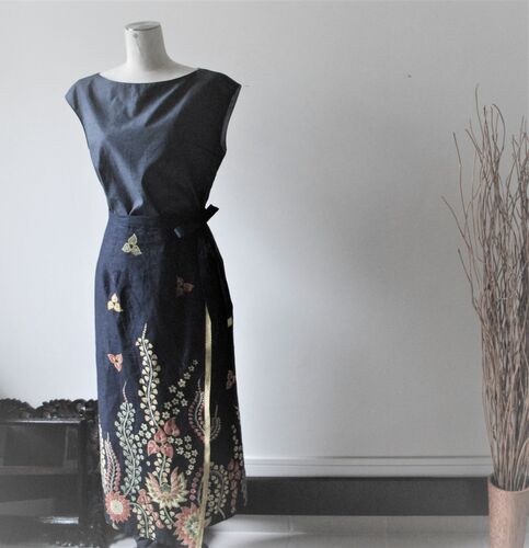 バリで買い付けたバティックが売るほどあります。 その中から2点を選んでバティックの定番、巻きスカートを作りました。 先ずは右のバティックから制作。 パターンはこちら。 ごちゃごちゃしていますが、CB(後ろ中心)で左右対称になるので CBで「輪」にし…