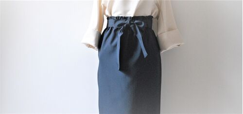 こんにちは! 前回のトップスに合わせるために、 何かスカートでも…、と思いまして。 ストレートスカートが良いな~と考えまして、 でも、簡単に作りたい! そこで。 生地はポリエステルで脱カジュアル。 パターンは簡単、縫製も簡単の総ゴムで作ることにし…